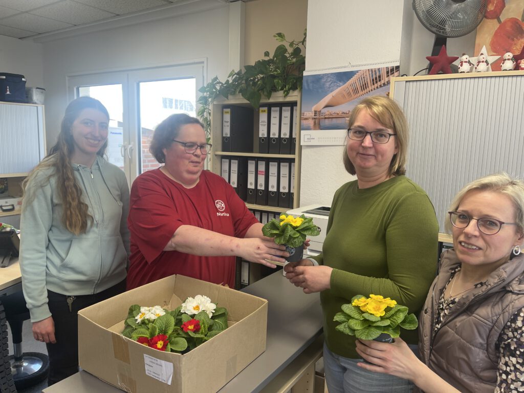 Eine schöne Überraschung zum Weltfrauentag: Heute bekamen alle Frauen in der WfbM Besuch von unserer Frauenbeauftragten Martina Kettler und Ihrer Assistentin Susanne Pfeifer. Die beiden verteilten ein paar hundert Blumen an alle Kolleginnen.